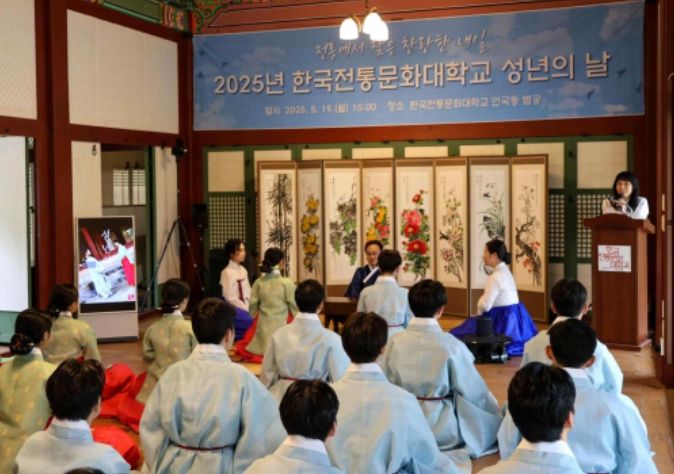 (정도일보) 국가유산청 한국전통문화대학교는 5월 19일 ‘성년의 날’을 맞이하여 한국전통문화대학교 안국동 별궁(충남 부여군)에서 올해 성년이 되는 재학생 100명을 대상으로 전통 ‘성년례’를 재현하는 기념행사를 개최했다.