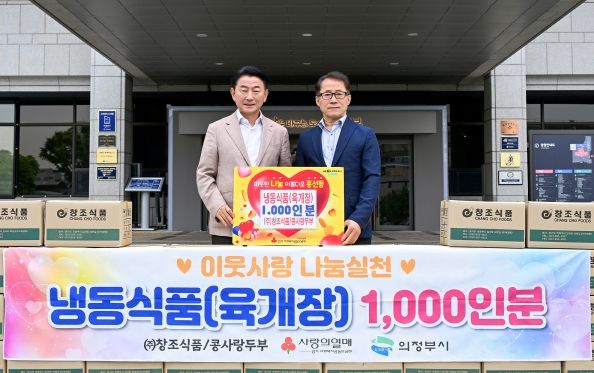 (정도일보) 의정부시는 5월 19일 ㈜창조식품‧콩사랑두부가 흥선‧호원권역 독거노인 등 취약계층을 위해 냉동 육개장 1천 인분을 기탁했다고 밝혔다.