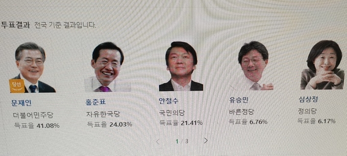 지난 19대 대선 득표율.