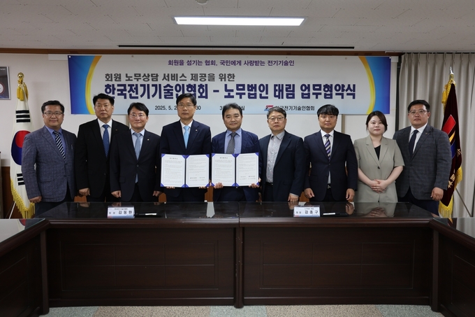 지난 23일 한국전기기술인협회와 노무법인 태림은 소속 회원사를 대상으로 인사 노무 및 중대재해처벌법, 산업안전보건법 등 노동관계법령 전반에 대한 자문·컨설팅·상담·교육 등의 서비스 제공을 위한 업무협약을 체결했다.