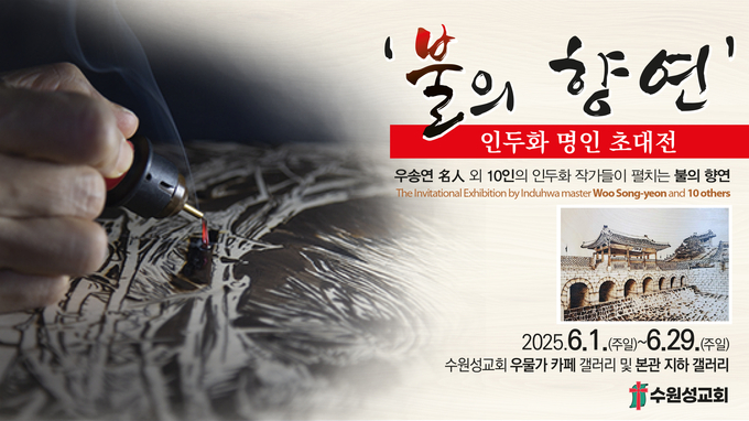 수원성교회 전시팀 관계자는 "조선시대부터 전해진 것으로 추정되는 인두화는 화로에서 달궈진 무쇠인두로 문양과 자연풍경, 인물 등을 나무판에 지져서 그림으로 새기는 고난이도의 작품으로 표현하는 아티스트"라면서 "우송연 인두화 명인 외 10인의 인두화 작가들의 아름답고 귀한 작품들을 감상하면서 관람하는 모든 분들이 마음의 쉼과 평안을 얻기 바란다"고 말했다.
