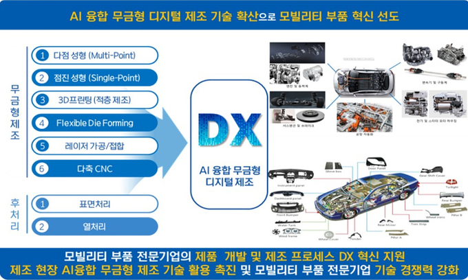 대구시는 국비 100억 원을 포함한 총사업비 143억 원 규모의 'AI 융합 무금형 디지털 제조 기반 미래모빌리티 부품 DX 혁신지원 기반구축' 과제를 본격 추진하게 된다.