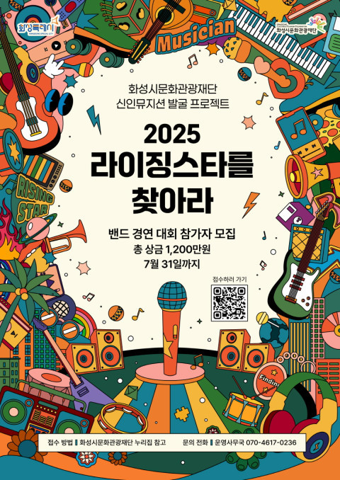 [정도일보 김현섭 기자] 화성시문화관광재단(대표이사 안필연)이 주관하는 신인 뮤지션 발굴 프로젝트 ‘2025 라이징스타를 찾아라’가 오는 7월 31일(목)까지 참가자를 모집한다.