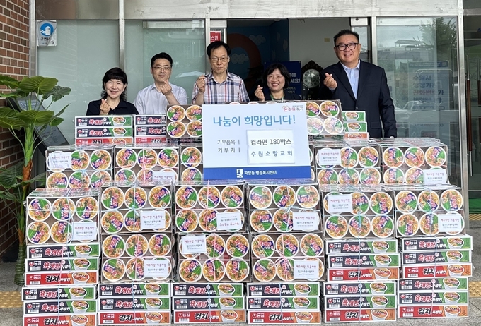 [정도일보 김현섭 기자] 수원소망교회는 지난 15일 파장동 행정복지센터에 불우한 어르신들을 위해 컵라면 180박스를 기부했다.