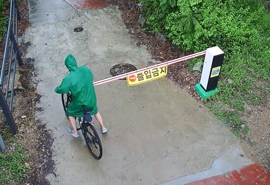하천 산책로에 설치된 자동 차단시설을 무단으로 넘어가고 있는 자전거운전자. [사진=시흥시]