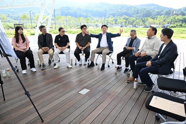 김동근 의정부시장이 지난 3일 복합문화융합단지 현장을 방문해 주민들과 간담회를 갖고 있다 [사진=의정부시]