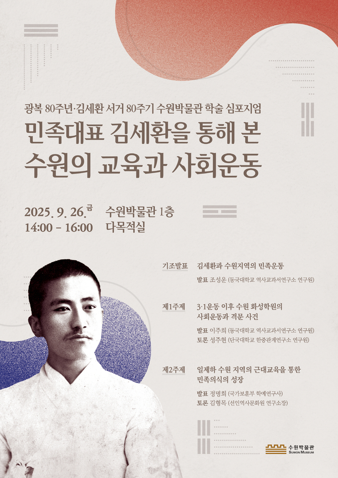 이어 “수원박물관에서 진행 중인 특별기획전 ‘다시 만난 민족 대표 김세환’과 이번 학술심포지엄이 광복 80주년 ‘당당한 대한민국, 빛나는 수원’을 만드는데 힘이 되길 바란다”고 밝혔다.