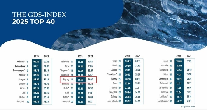 GDS-I 평가 40개 도시 랭킹. [사진=고양특례시]