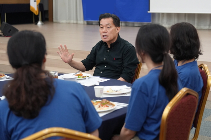 이재준 시장이 신규공직자들과 이야기를 나누고 있다.