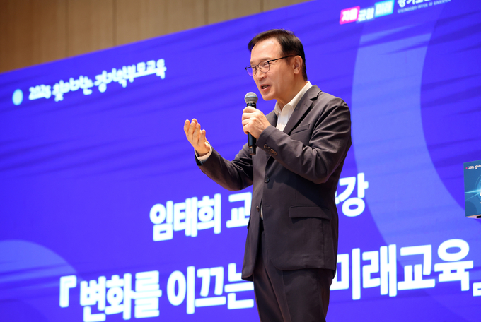 임태희 경기도교육감이 특강을 하고 있다 [사진=경기도교육청]