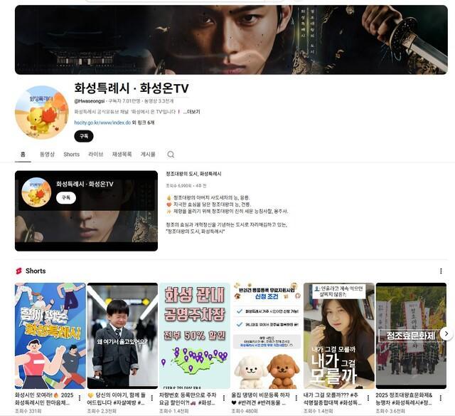 화성시 유튜브채널 '화성특례시·화성온TV' 홈페이지.  [사진=화성시]