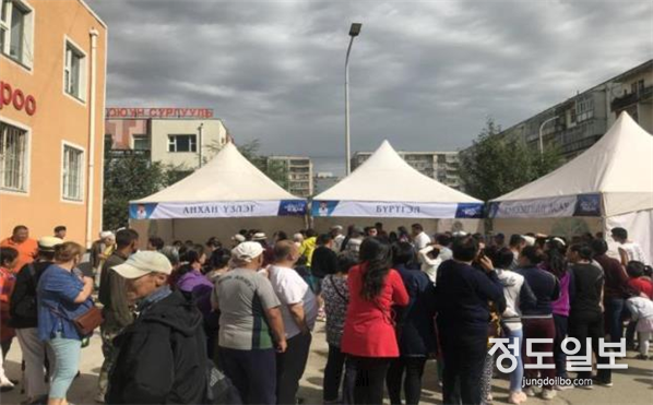 내과, 안과, 소아과, 한의과 등 양·한방 전문 의료진으로 구성된 이번 의료봉사단은 의료 인프라가 열악한 현지에서 양질의 의료서비스를 받지 못하는 몽골 주민들을 대상으로 질병치료와 관리에 필요한 의약품과 의료정보를 제공했으며 2천200여 명의 주민들이 행사장을 찾아 현지에서 큰 호응을 얻었다.