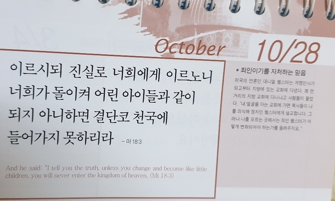 어떤 마을에 임종을 앞둔 어르신이 한 분 계셨습니다. 목사님이 수차례 복음을 전했지만 그동안 한 번도 교회에 나오지 않았던 완고한 어르신이었습니다. 어르신이 임종을 앞두었다는 말을 듣고 목사님은 더 자주 찾아가 복음을 전했습니다. “어르신, 지금이라도 예수님을 영접하세요.” “지금이라도 주님을 영접하면 천국에 가실 수 있습니다.” 몇 날 며칠을 찾아가도 어르신은 한 마디도 대꾸하지 않았습니다.