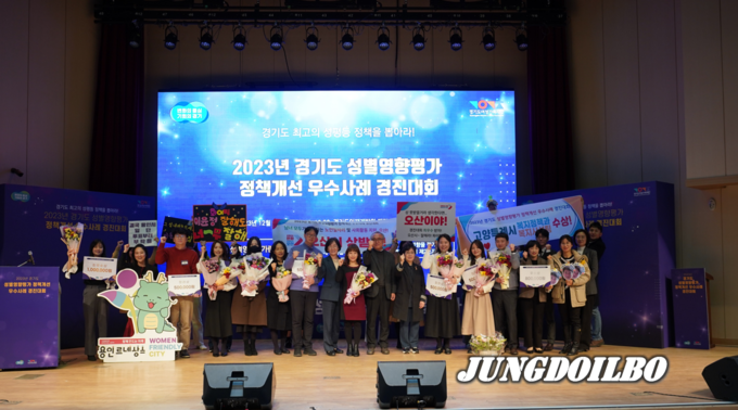 경기도는 지난 13일 경기도인재개발원 대강당에서 ‘2023년 경기도 성별영향평가 정책개선 우수사례 경진대회’를 열고 1, 2차 심사를 통과한 총 10건의 사업에 대한 발표를 진행했다. 여기에 200명의 청중평가단 투표와 전문가 심사 점수를 합산해 최종 순위를 선정했다.