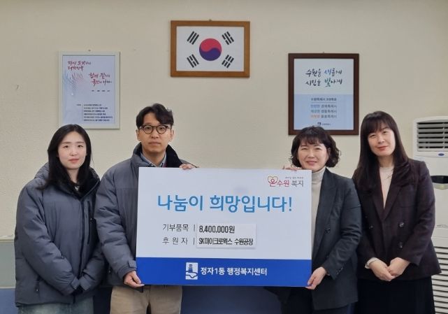 [정도일보 고정희 기자] 수원시 장안구 정자동 소재 SK마이크로웍스 수원공장은 지난 14일, 취약계층을 위해 정자1동에 840만 원을 전달했다.