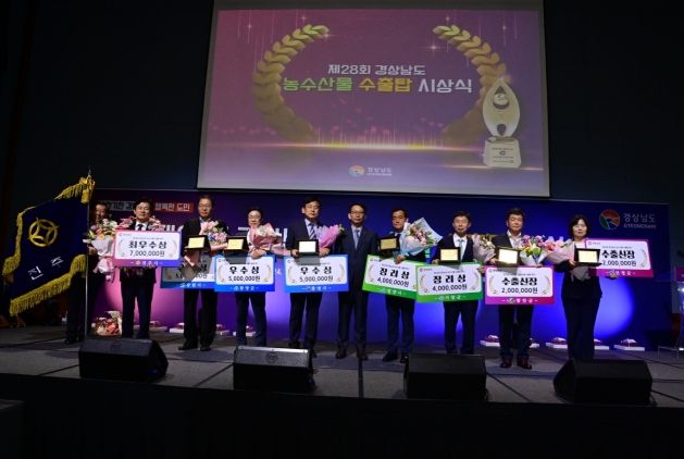 (정도일보) 경남도는 30일 창원컨벤션센터에서 ‘제28회 경상남도 농수산물 수출탑 시상식’을 개최해 도내 농수산업 수출 경영인을 축하했다.