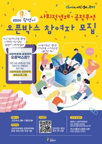 광명시는 오는 6월부터 11월까지 ‘2024 시민과 함께하는 사회적경제․공정무역 오픈박스’ 프로그램을 운영한다