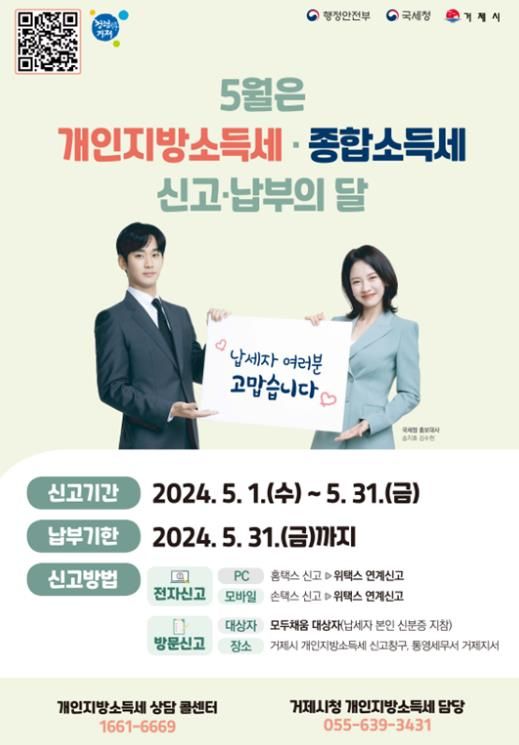 (정도일보) 거제시는 5월 1일 부터 5월 31일 기간 동안 거제시청 본관 1층 세무과 내 개인지방소득세 도움 창구에서 모두채움안내문을 받은 납세자를 대상으로(소규모사업자, 종교인, 주택임대 소득 분리과세 대상자) 도움 창구를 운영한다고 밝혔다.