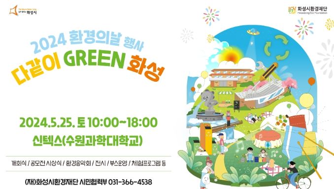 (정도일보) 화성시환경재단이 오는 25일 수원과학대학교 신텍스에서 환경의 날 행사 ‘다같이 GREEN 화성’을 개최한다.