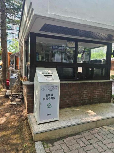 [정도일보 고정희 기자] 수원시가 1000세대 이상 대규모 공동주택 6개소에 종이팩 수거함을 설치했다.