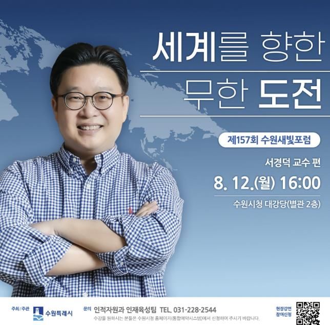 [정도일보 고정희 기자] ‘한국 알리미’ 서경덕 성신여대 교수가 8월 12일 오후 4시 시청 대강당에서 열리는 제157회 수원새빛포럼 강연자로 나선다.