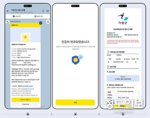 (정도일보) 가평군은 세외수입 체납 정보를 모바일 전자고지로 안내하는 ‘카카오톡 알림톡’ 서비스를 이달 23일부터 시범 시행에 들어간다고 밝혔다. 내년에 본격 시행을 앞두고 있는 이번 서비스는 납세자 편의 증진과 체납액 징수율을 높이기 위한 것이다.