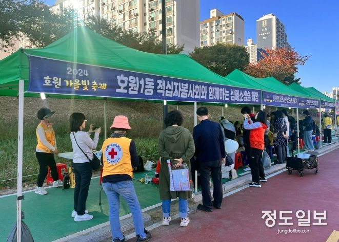 (정도일보) 의정부시 호원1동주민센터는 10월 26일 호원1동 적십자봉사회가 ‘2024 호원 가을빛축제’에서 주민들을 위한 심폐소생술 체험공간(부스)을 운영했다고 밝혔다.