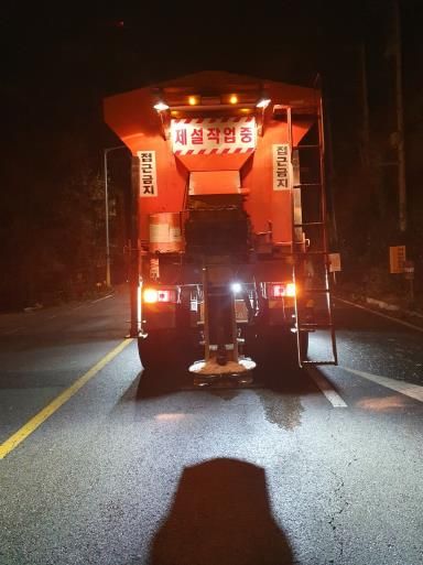 시는 26일 저녁 11시부터 인력 29명과 제설장비 38대를 투입해 도로 안전사고가 우려되는 결빙취약구간(고갯길 및 터널 진출입로 및 교량 등)을 중점적으로 친환경제설제 63톤을 두 차례에 사전 살포하는 등 밤샘 제설작업에 총력을 다했다.