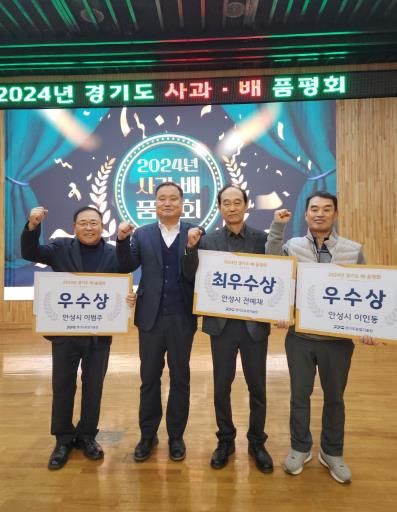 (정도일보) 안성시농업기술센터은 지난 26일 경기도농업기술원 주관 2024년 경기도 배·사과 품평회에서 일죽면 전예재 농가가 최우수상을, 양성면 이범주, 서운면 이인동 농가가 우수상을 수상했다고 밝혔다.
