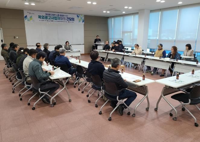 이번 간담회에서는 2024년 옥외광고물 종합정비 실적을 설명하고, 2025년 주요사업인 불법 광고물 부착방지 사업, 주인없는 간판 정비 사업, 전자게시대 시범사업 등에 대하여 논의하였다.