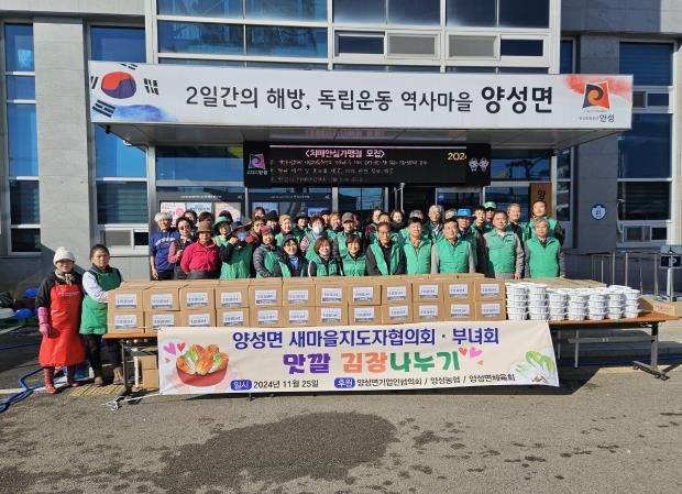 (정도일보) 양성면새마을지도자 ․ 부녀회는 11월 25일 양성면 행정복지센터에서 ‘맛깔 김장 나누기’ 행사를 진행하였다.