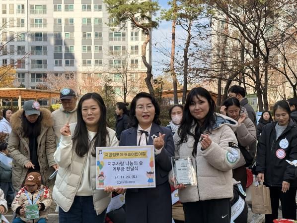 (정도일보) 국공립 롯데캐슬어린이집은 지난 23일, 원생들과 학부모님들이 함께 참여한 “지구사랑 나눔의 숲” 행사의 수익금과 기부금을 모아 안성종합사회복지관(관장 장은순)에 후원금을 전달했다.