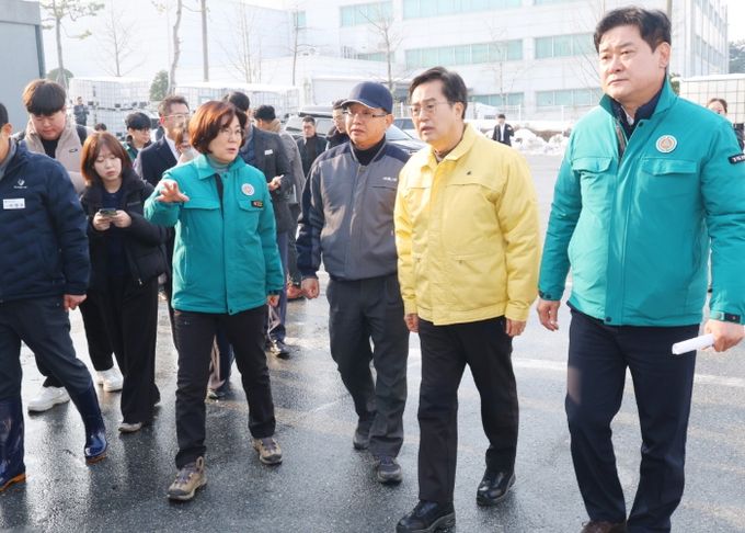 이날은 김동연 도지사와 김보라 안성시장, 윤종군 의원 등이 함께 폭설로 피해를 입은 관내 기업과 농장 등을 시찰하며 피해 현황 및 복구 지원 방안 등을 논의했다.