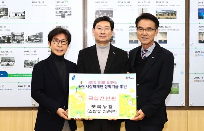 이 시장은 “포곡농협이 올해 좋은 성과를 많이 이뤘는데, 그 성과를 용인의 자라나는 미래 세대를 위해 장학금으로 기탁해 주셔서 진심으로 감사하다”고 인사했다.