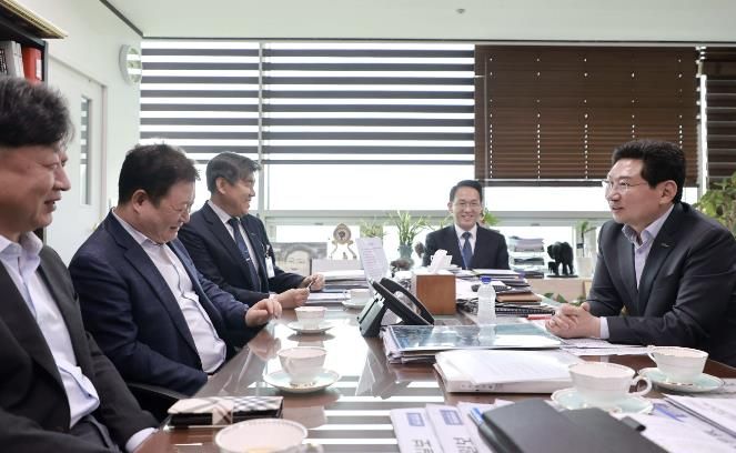 이상일 용인특례시장이 기흥구 영덕동 중학교 설립에 대해 면담을 하고 있다