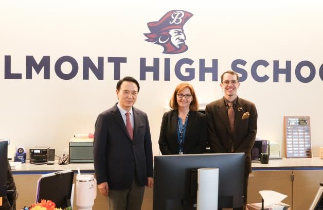 임태희 교육감은 벨몬트고에 다니는 한국계 학생 10여 명의 안내로 학교를 견학했다. 이후 ▲꽃게를 해부해 갑각류의 구조를 알아보는 해부학 수업 ▲다섯 개의 점을 사용해 그래프를 완성하는 수학 수업 ▲‘챗GPT를 통해 과제를 하는 것을 허용해야 하는지’를 주제로 찬반 토론을 하는 영어 수업 등에 참관했다.