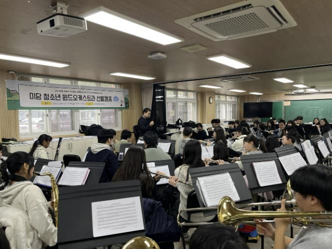 (정도일보) 광주하남교육지원청이 주최하고 광주 문화예술공유학교가 운영하는 ‘미담청소년 윈드오케스트라’가 지난 15일 오전 11시 광주 관내 거점학교에서 2025년 개강식을 열고 새로운 출발을 알렸다.