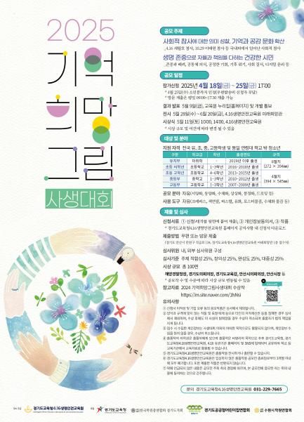 (정도일보) 경기도교육청4.16생명안전교육원이 사회적 참사를 기억하고 공감하며 인성 중심, 생명안전교육 문화를 확산하고자‘2025 기억 희망 그림 사생대회’를 개최한다.