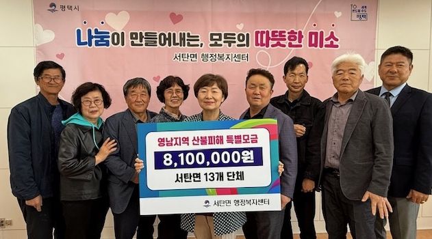(정도일보) 최근 영남지역에서 발생한 대규모 산불로 인해 많은 이재민이 발생하고 피해가 확산됨에 따라, 평택시 서탄면은 산불 피해 복구를 위한 특별모금을 진행하고, 서탄면 13개 단체와 최진태 이장의 따뜻한 뜻을 모아 810만 원을 기부했다.