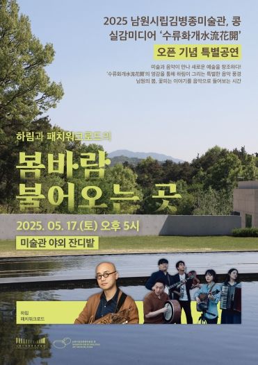 (정도일보) '남원시립김병종미술관,콩'에서 오는 2025년 5월 17일 5시, ‘수류화개(水流花開)’ 실감미디어 전시 기념 콘서트가 열린다.