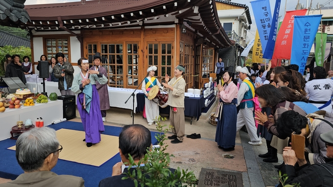 [정도일보 고정희 기자] '화성행궁골목형상점가 상인회(회장 표수훈)'에서 주최하는 ‘한데우물정제(井祭) 마을축제’가 ‘한데우물이 흐른다’를 주제로 지난 25일 수원시 행궁동 공방거리 일원에서 성황리에 개최됐다.