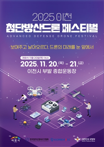 [정도일보 김현섭 기자] 이천시(시장 김경희)는 '이천의 하늘이 바뀌면, 대한민국의 산업 지도가 바뀔 것'이라는 비전을 가지고 오는 20~21일까지 부발읍 종합운동장(무촌리 52) 일원에서 '2025 이천 첨단방산드론 페스티벌'을 개최한다. 개막식은 20일 오후 2시이다.
