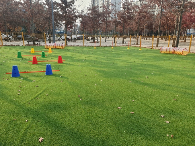 이번에 조성된 ‘해맑개’는 경기도청 북부청사 경기평화광장 내 약 270㎡ 규모로 반려견이 쉽게 인지할 수 있는 노란색 울타리로 꾸며졌으며, 동물 등록을 완료한 체고 40㎝ 미만의 중·소형견이 이용할 수 있는 전용 공간이다.