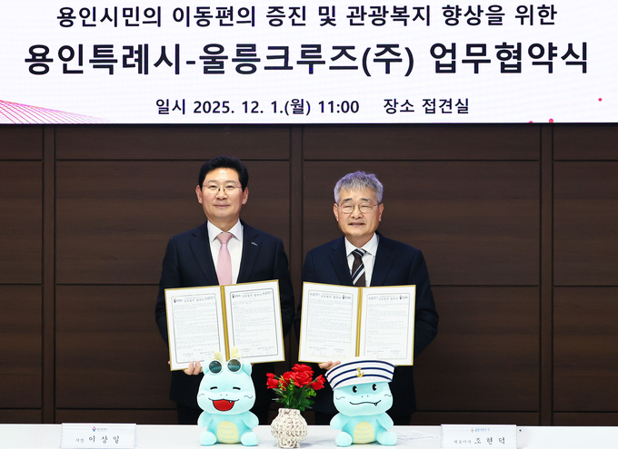 [정도일보 김제영 기자] 용인특례시는 1일 시청 4층 접견실에서 울릉크루즈㈜와 ‘용인시민 이동편의 증진 및 관광복지 향상을 위한 업무협약’을 체결했다고 밝혔다.