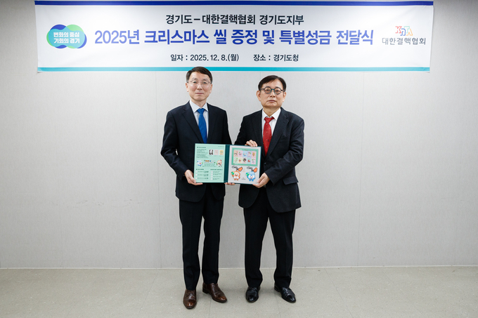 [정도일보 김제영 기자] 김성중 경기도 행정1부지사는 8일 도청에서 김영준 대한결핵협회 경기도지부장으로부터 크리스마스 실(seal)을 증정받고 특별성금 200만 원을 전달했다. 전달식은 2025년 크리스마스 실 모금 캠페인의 취지를 함께하고 결핵퇴치기금을 마련하기 위해 이뤄졌다.