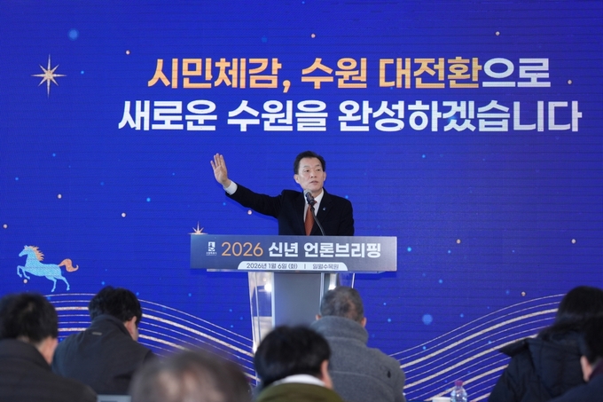 6일 일월수목원에서 신년 브리핑을 한 이재준 시장은 “2026년에도 시민 삶에 실질적으로 도움이 되는, 시민체감 정책을 펼치겠다”며 “더 많은 시민을 만나고, 더 많은 목소리를 들으며 시민과 함께 새로운 수원을 만들어 가겠다”고 말했다.