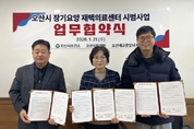 [정도일보 김제영 기자] 오산시 보건소는 지난 21일 오산시민의원, 세교중앙내과의원과 함께 ‘장기요양 재택의료센터 시범사업’의 원활한 운영을 위한 업무협약을 체결했다고 밝혔다. 이번 협약은 거동이 불편하거나 의료기관 방문이 어려운 장기요양 재가급여 어르신을 대상으로, 의료서비스와 장기요양 돌봄을 지역사회 안에서 통합적으로 제공하기 위해 마련됐다. 장기요양 재택의료센터 시범사업은 의사·간호사·사회복지사로 구성된 전문 인력이 팀을 이뤄 방문진료와 방문간호를 실시하고, 필요한 지역사회 돌봄서비스를 연계·지원하는 사업이다. 이를 통해 장기요양 수급자가 요양시설에 입소하지 않고도 기존 거주지에서 지속적인 의료서비스를 받을 수 있도록 지원하는 데 목적이 있다. 이번 협약을 통해 협약 기관들은 통합돌봄 대상자와 건강 취약계층을 중심으로 보다 촘촘한 의료 연계와 맞춤형 지원을 제공하며, 장기요양 재택의료 서비스의 안정적인 정착을 위해 상호 협력할 예정이다. 김태숙 오산시보건소장은 “이번 협약은 지역사회 장기요양 수급자의 의료 접근성을 높이기 위한 의미 있는 첫걸음”이라며 “앞으로도 장기요양 재택의료 서비스가 지역사회에서 안정적으로 운영될 수 있도록 행정적 지원을 아끼지 않
