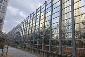수원특례시, 영통아이파크캐슬1단지 투명방음벽에 조류충돌방지 테이프 시공 지원
