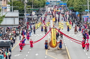 [정도일보 고정희기자] ‘K-축제’로 자리매김한 정조대왕 능행차 공동재현이 28일 수원에서 열렸다. 오전에 세차게 비가 내렸지만 수원종합운동장에서 본격적인 행렬이 시작된 오후에는 비가 그쳐 수많은 관람객이 정조대왕 능행차 재현을 함께 즐겼다. 정조대왕 능행차 재현 행렬(수원 구간)은 오전 노송지대(1구간)에서 시작됐다. 오후 3시 30분 수원종합운동장에서 행렬이 출발했고, 종합운동장에서 행궁광장에 이르는 길 양쪽은 관람객들로 가득했다. 시민 2000여 명과 말 70여 필이 행렬에 참여했다. 행궁광장에서 정조대왕이 입궁하는 퍼포먼스로 능행차 공동재현은 마무리됐다. 행궁광장에서는 국제자매도시 공연단의 축하공연, 정조대왕 행차를 환영하는 축하행렬인 수원화성 퍼레이드, 정조대왕 능행차 재현·입궁 퍼포먼스, KBS 국악관현악단과 국악인 김영임, 유태평양의 협연 콘서트가 이어졌다. 이재준 수원시장, 이재식 수원시의회 의장, 수원 지역 국회의원들도 행렬에 참여하며 시민들과 함께했다. 행궁광장에서 시민들을 만난 이재준 시장은 “수많은 시민이 함께 즐긴 정조대왕 능행차 공동재현은 정조대왕이 꿈꿨던 여민동락(與民同樂)이 실현된 축제”라며 “정조대왕 능행차 공동재현을 한국을 대