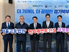 [정도일보 김현섭 기자] 의정부시가 법무부, 법원행정처, 경기도와 함께 경기북부 사법 불균형 해소를 위한 업무협약을 체결했다. 인구 360만명의 경기 북부 지역이 전국 18개 지방법원 중 유일하게 고등법원 원외재판부가 없는 '사법 소외지역'에서 벗어나는 첫 걸음이다. 18일 의정부시에 따르면 이번 협약에 따라 의정부시 고산동 일대에 조성되는 법조타운에는 2031년까지 의정부지방법원과 의정부지방검찰청이 이전하고, 서울고등법원 원외재판부가 신설된다. 법조타운 조성은 단계별로 진행된다. 내년 말까지 부지 조성을 완료하고, 2028년까지 하반기까지 청사 설계를 마친다. 이후 2031년 하반기 준공을 목표로 본격적인 건축공사에 들어간다는 구상이다. 경기도와 의정부시는 도시계획 인허가와 기반시설 연계 등 행정 지원을 맡는다. 법무부는 의정부지방검찰청 이전계획을, 법원행정처는 의정부지방법원 이전과 서울고등법원 원외재판부 설치를 각각 추진한다. [정도일보 김현섭 기자] 김동근 의정부시장은 "경기북부가 정의롭고 공정한 도시로 다시 태어나고, 의정부시는 명실상부한 경기북부의 법률 거점 도시로 발돋움하게 될 것"이라고 밝혔다. 김대순 경기도 행정2부지사는 “오늘은 입법·사법·행